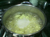 descasquei batatas, que foram ao lume a cozer em água temperada com sal.